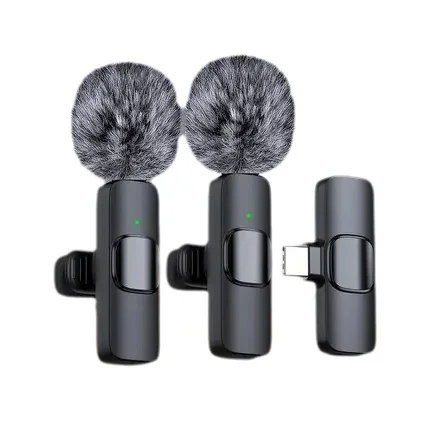 Mini Wireless Lavalier Microphone Windproof Wool Replaceable Lavalier Microphone for iPhone YouTube Vlog Audio Recording