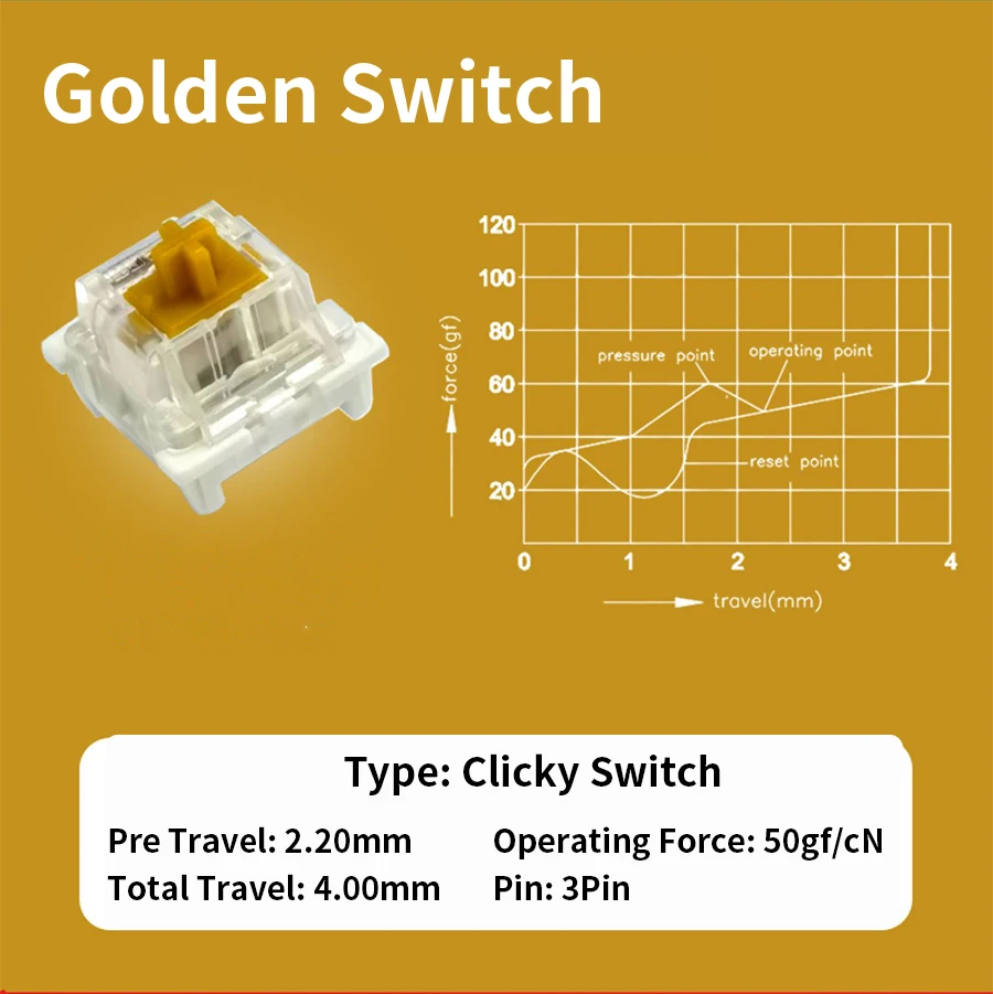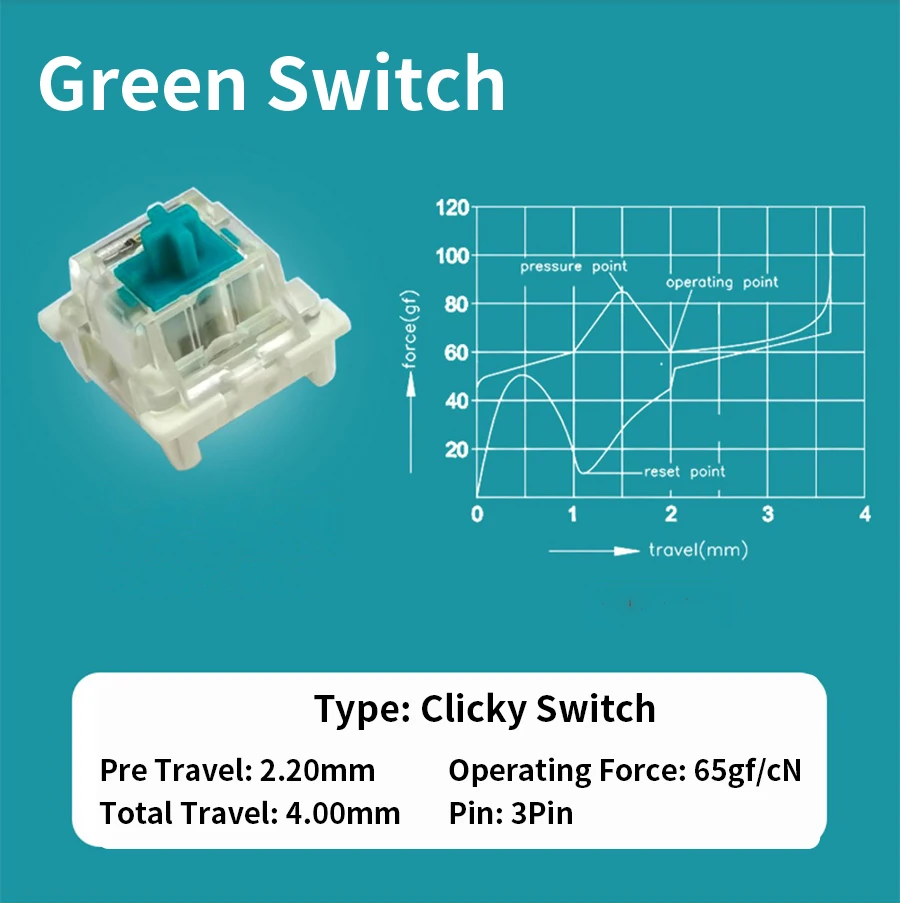 Descriptions: Similar to Outemu Blue Switch, the operating force is heavier than Outemu Blue Switch, with an eye-catching "click" sound and the rebound is more powerful. Can be used on big keys.