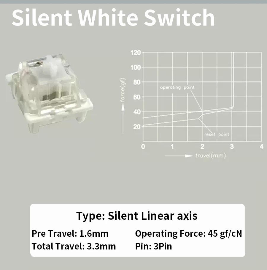 Descriptions: Have obvious sense of paragraph, trigger is faster, add silicone cushion on the basis of Outemu Brown Switch, Is an excellent and low price Silent Switch, can effectively reduce the sound brought by the switch, very suitable for quiet environment.