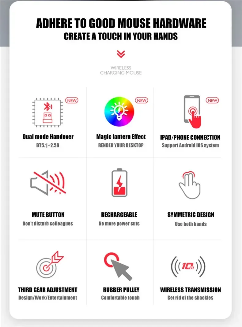 Wireless Mouse Rechargeable Dual Modes Bluetooth-combatible 2.4G USB Computer Mice For Laptop iPad Tablet Notebook Gaming Mouse