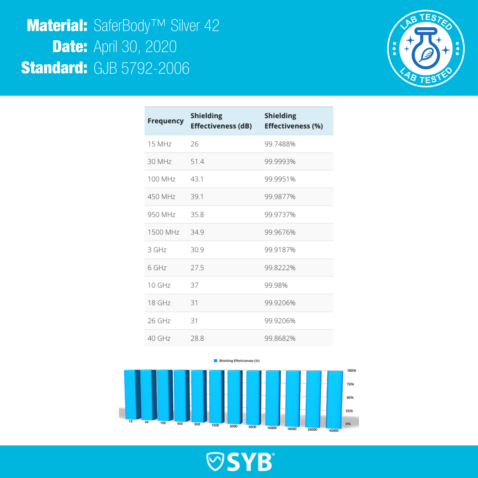 - Laboratory tested for 5G, up to 26 GHz, to Shield Your Body from up to 99% of harmful EMF radiation.
